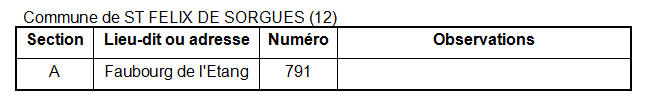 - TCl:2-Parcelles,3,4 : Seules les colonnes 2, 3 et 4 seront utilisées. Le texte d’entête de la colonne 2 sera « Parcelles », au lieu de « Références cadastrales ».